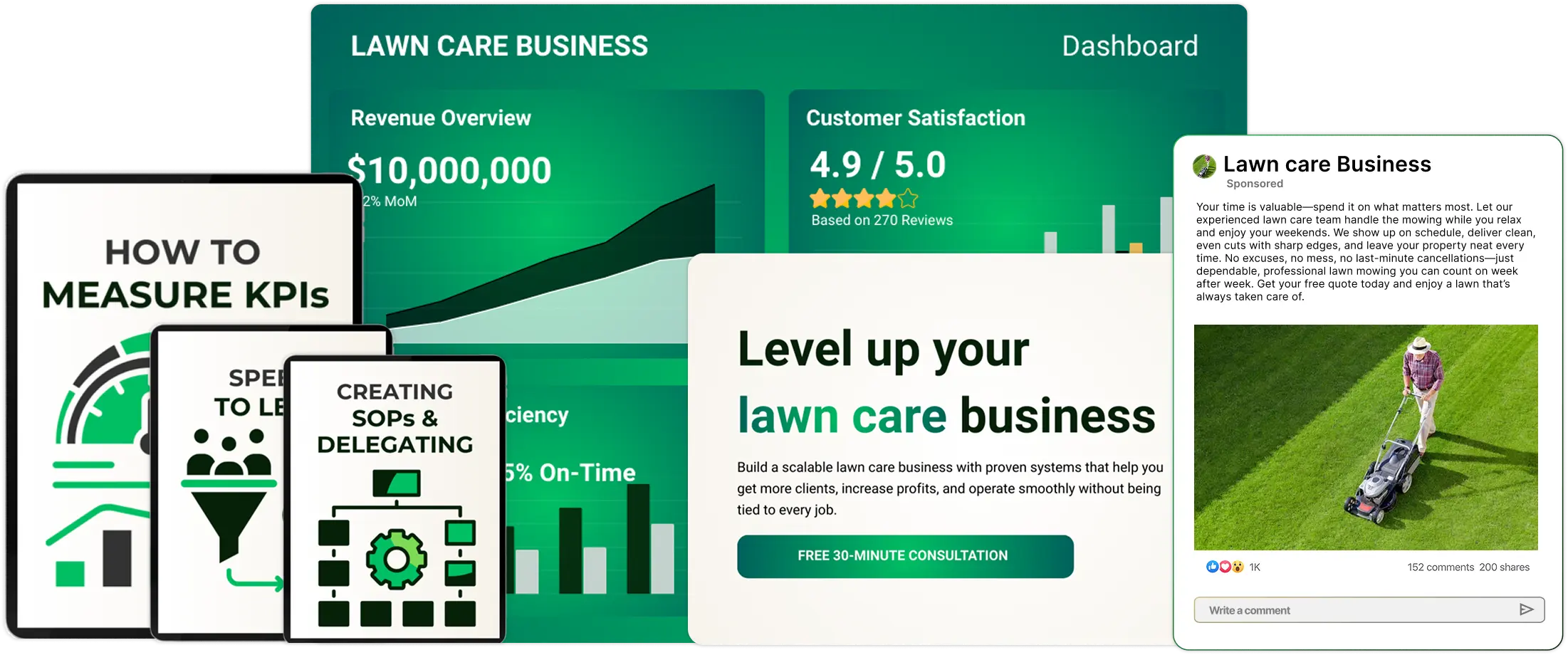 I've helped Lawn Care & Landscaping companies on their way to achieve the dream of hitting $10M in annual revenue, solidifying their market position, and transforming their business into a local authority…
